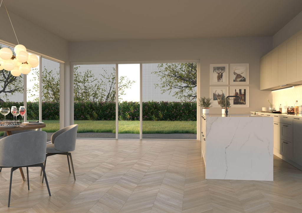 Feel with profiles featuring a minimal and linear design, creating a 'frame' through which to look and mark the transition between interior and exterior: the rectilinear and streamlined shapes, with bevels that accentuate their depth, define the geometry of the openings without overloading them.